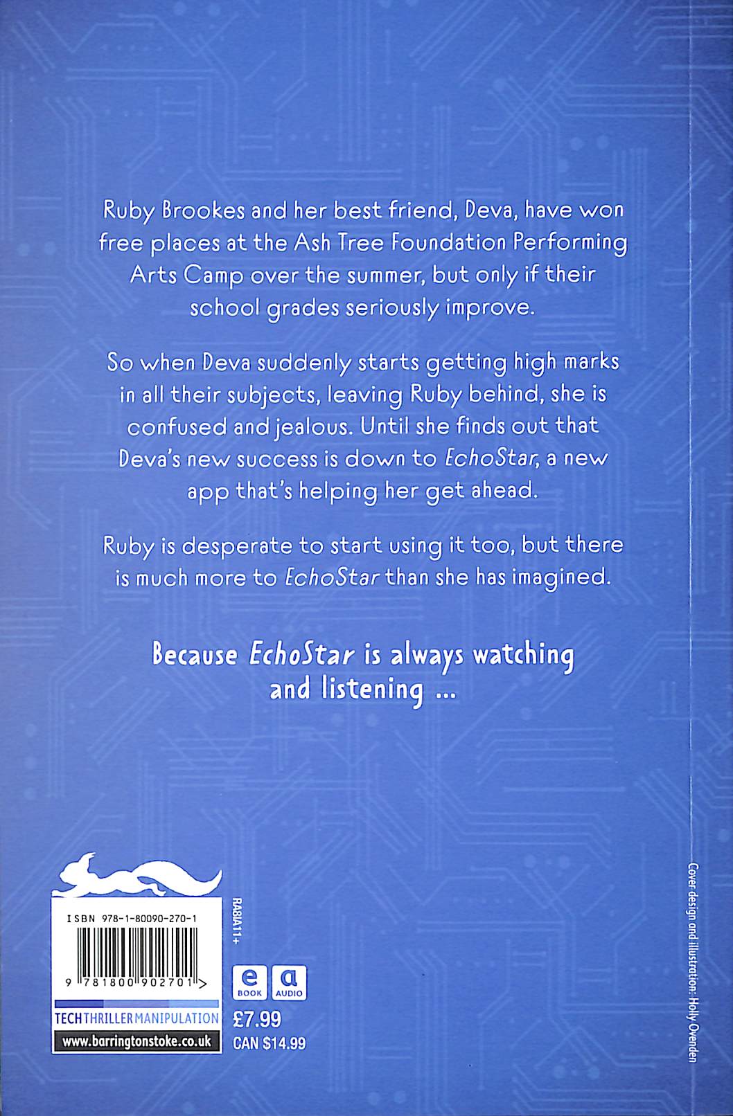 So when Deva suddenly starts getting high marks in all their subjects, leaving Ruby behind, she is confused and jealous. Until she finds out Deva's success is down to EchoStar, a new app that's helping her get ahead. Ruby is desperate to start using it too, but there is much more to EchoStar than she has imagined. Because EchoStar is always watching and listening … Particularly suitable for readers aged 11+ with a reading age of 8.