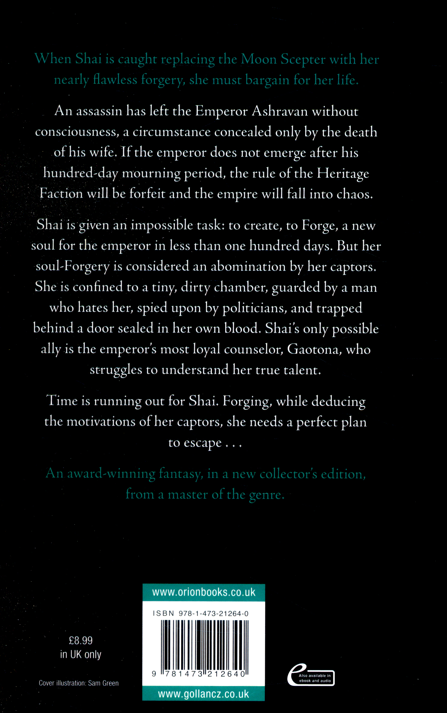 The emperor has barely survived an assassination attempt, he needs a new soul and, despite viewing her skill as a Forger an abomination, her captors have turned to Shai for help. Skillfully deducing her captors plans, Shai know the first thing she needs is a perfect escape plan. but in the meantime, her fate and that of the empire lies in completing an impossible task: is it possible to create a forgery so convincing that it's better than the soul itself?