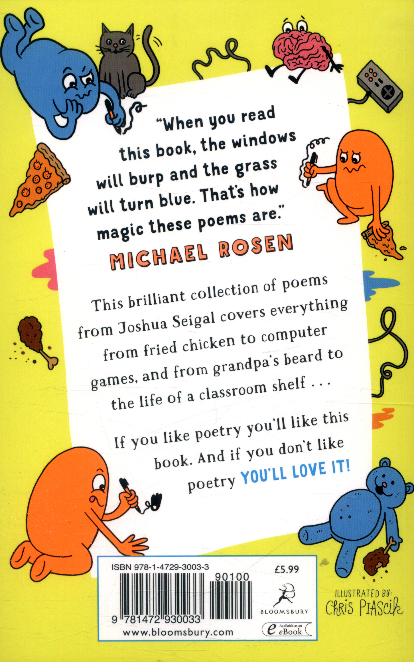 If you like poetry, you'll like this book. And if you don't like poetry you'll LOVE it!With poems on every topic from the power of books to the joys of fried chicken, this collection is a fabulous mix of Joshua Seigal's subversive humour and insight into the world of children.