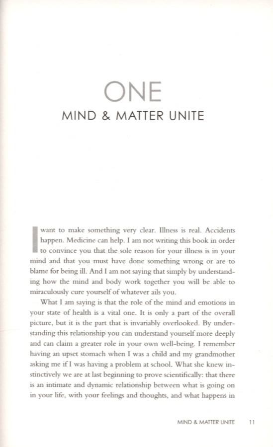 She explains the interconnectedness between your physical state and your emotional, psychological and spiritual health, and reveals: how unresolved emotional and psychological issues can affect your physical health; how feelings and thoughts are linked to specific parts of the body; and, how you can take steps to heal your body with your mind, and your mind with your body. "Your Body Speaks Your Mind" shows you how to initiate communication between body and mind, and decode the priceless information your body is giving you, in order to achieve better health and a greater sense of wellbeing.
