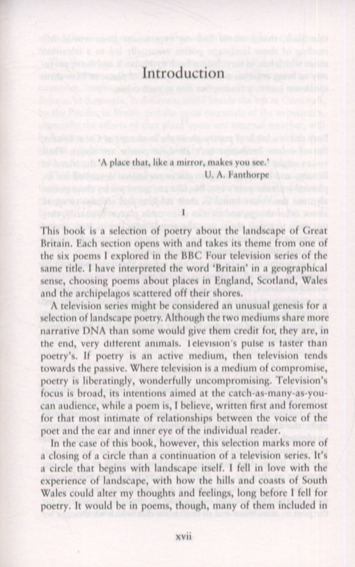 Under the headings of six varieties of British landscape - London and Cities, Villages and Towns, Mountains and Moorland, Islands, Woods and Forest, and Coast and Sea - he has collected poems that evoke qualities of the land, city and sea and have become part of the way we see these landscapes.