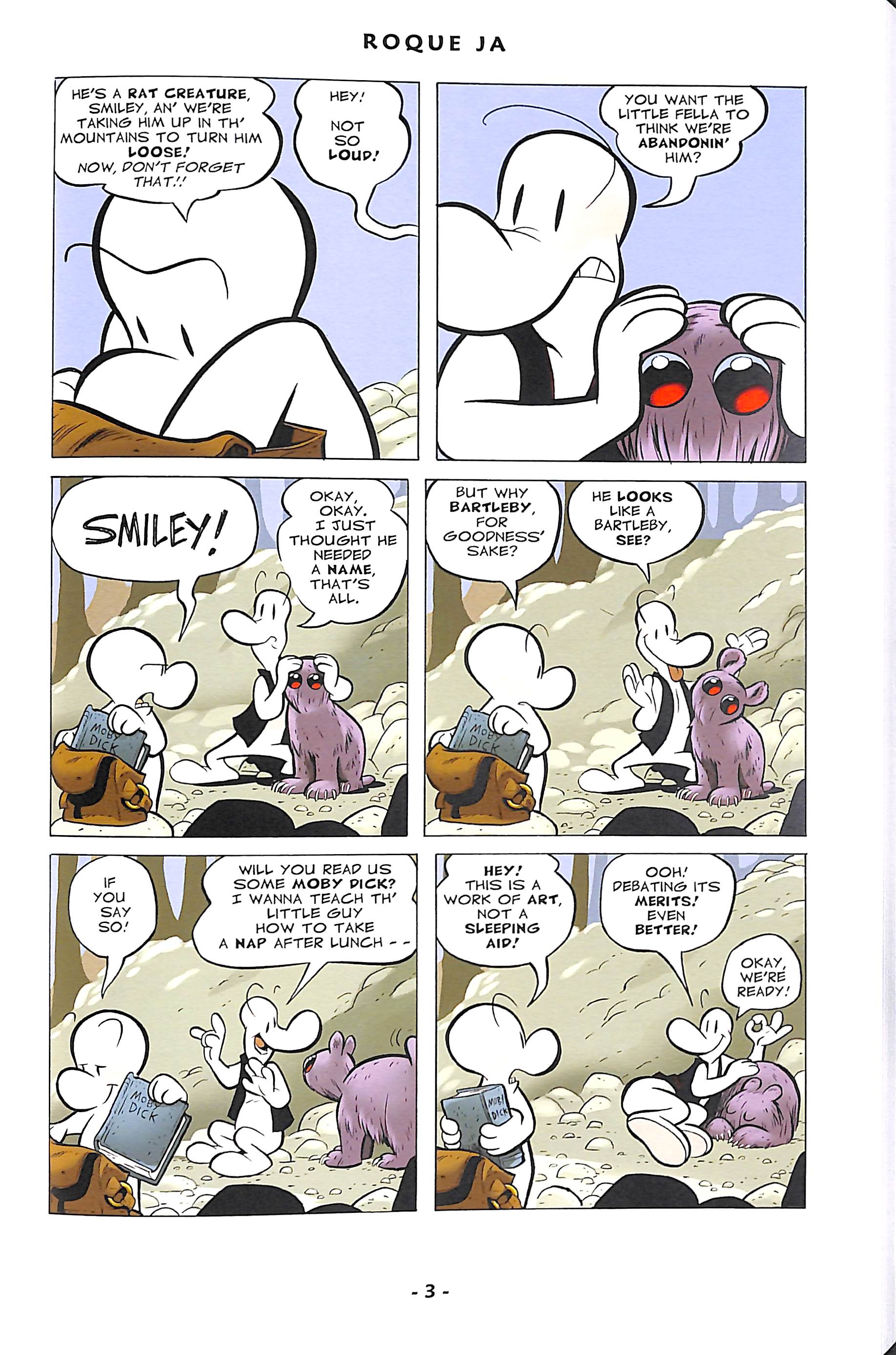 Read the fifth book in this thrilling adventure! Fone Bone and Smiley Bone strike out into the wilderness to return a lost Rat Creature cub to the mountains.
