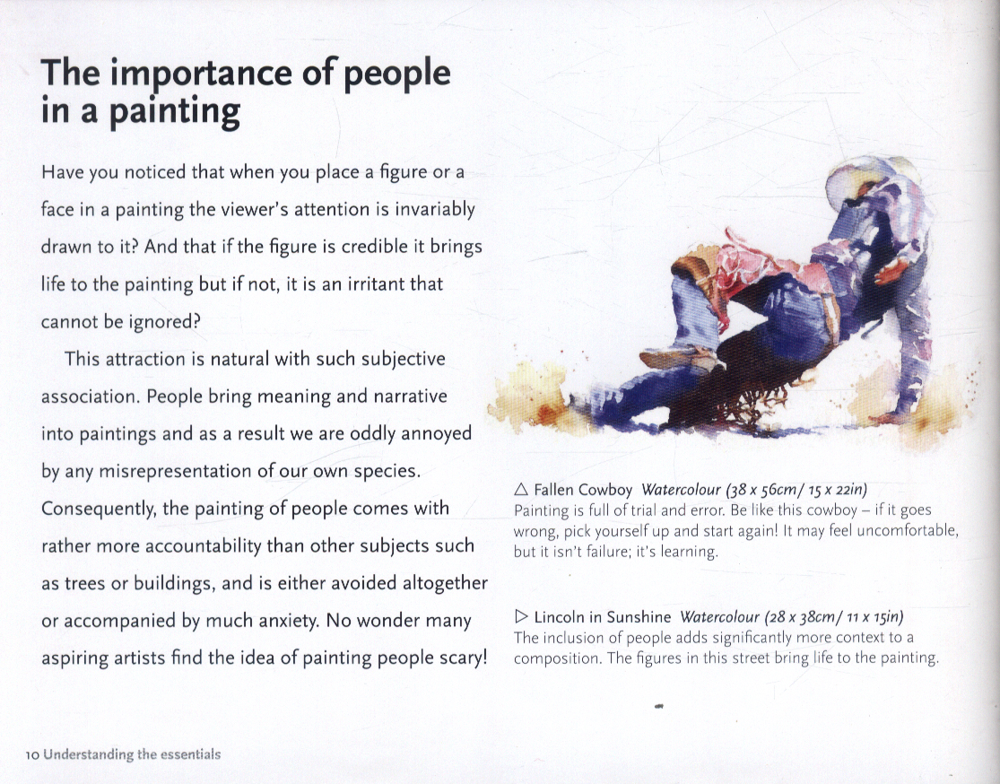 She also guides you through ways to insert people into your pre-existing painting to bring them to life; scenes like urban streets and on the beach are explored.