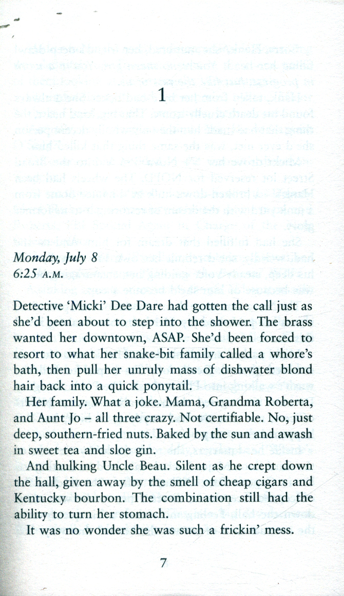The first Saturday in July. A missing woman. The number seven carved into her door. The countdown has begun . . . Detective Micki Dare is a seasoned, no-nonsense cop.
