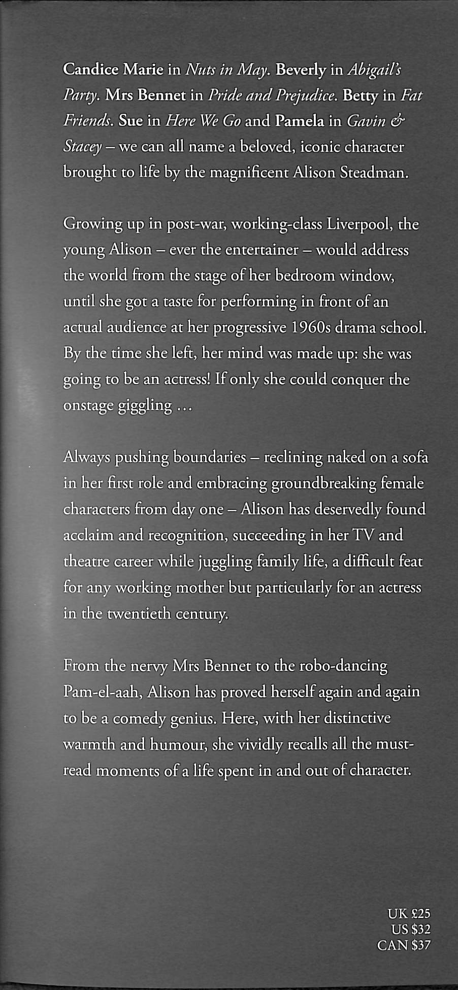 A Waterstones Best Book of 2024 'Marriage to Mike Leigh, the minutiae of working on Gavin and Stacey: it's a tribute to her range that there's something here to interest everybody' Telegraph The first memoir from the national treasure, critically acclaimed actress and much-loved Gavin and Stacey star. Candice Marie in Nuts in May. Beverly in Abigail’s Party. Mrs Bennet in Pride and Prejudice. Betty in Fat Friends. Sue in Here We Go and Pamela in Gavin & Stacey – we can all name a beloved, iconic character brought to life by the magnificent Alison Steadman. Growing up in post-war, working-class Liverpool, the young Alison – ever the entertainer – would address the world from the stage of her bedroom window, until she got a taste for performing in front of an actual audience at her progressive 1960s drama school.