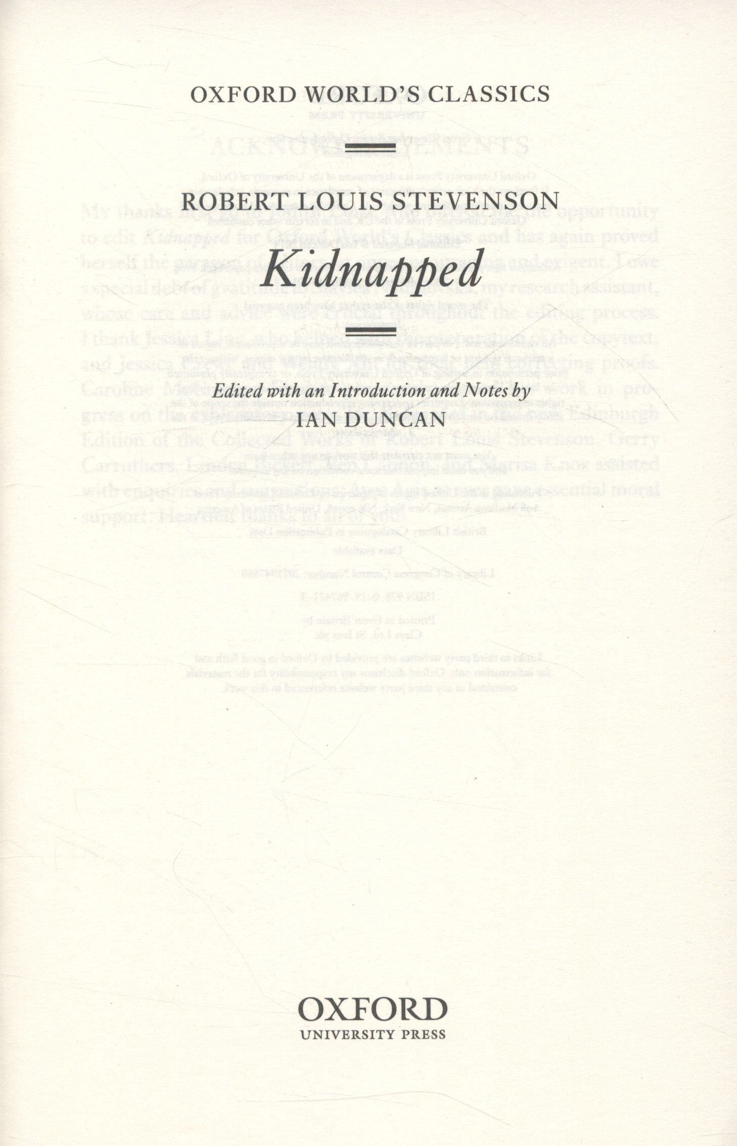 It includes Stevenson's 'Note to Kidnapped', reprinted for the first time since 1922. ABOUT THE SERIES: For over 100 years Oxford World's Classics has made available the widest range of literature from around the globe.