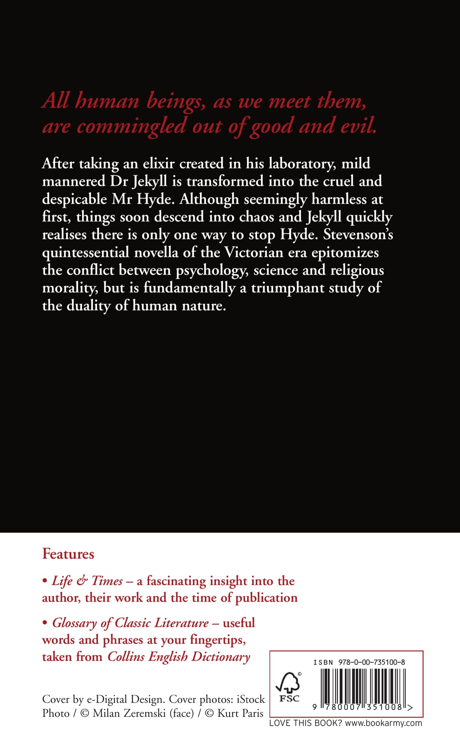 HarperCollins is proud to present its new range of best-loved, essential classics. 'All human beings, as we meet them, are commingled out of good and evil.' After taking an elixir created in his laboratory, mild mannered Dr Jekyll is transformed into the cruel and despicable Mr Hyde.