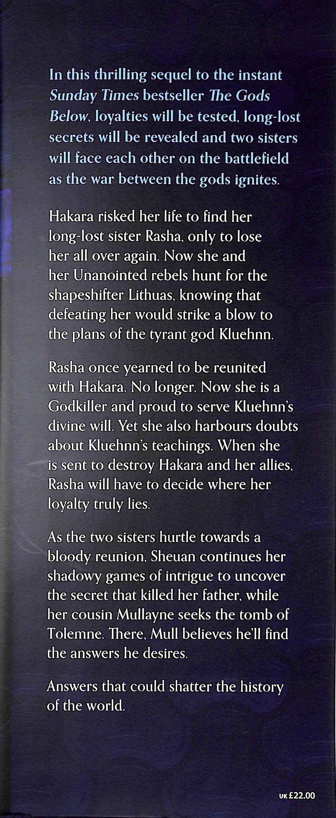 In this thrilling sequel to the Sunday Times bestseller The Gods Below, loyalties will be tested, long-lost secrets will be revealed, and two sisters will face each other on the battlefield as the war between the gods ignitesHakara risked her life to find her long-lost sister Rasha, only to lose her all over again.