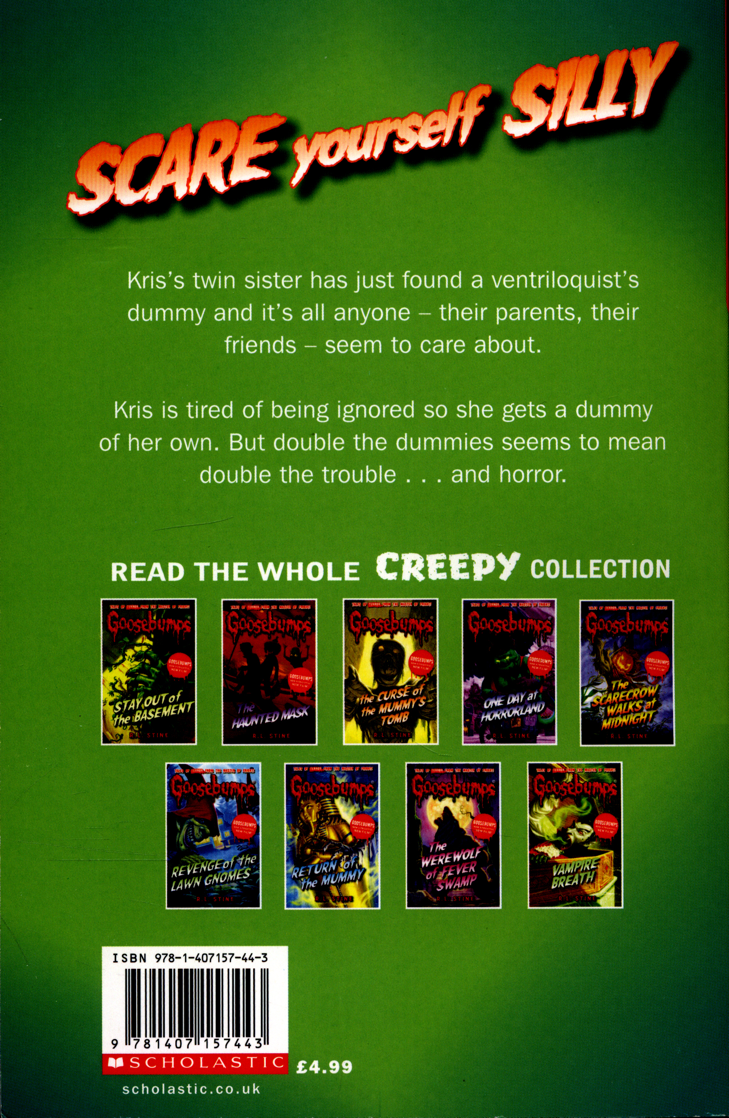 Lindy's having a great time learning to make Slappy move and talk. But Kris is jealous of all the attention her sister is getting. It's not fair. Why does Lindy always have all the luck? Kris decides to get a dummy of her own. She'll show Lindy! Then weird things begin to happen. Nasty things. Evil things. No way a dummy can be causing all the trouble. Or is there? From the bestselling author of Fear Street, now a hit show on NETFLIX Goosebumps have been scaring generations of kids The books have been made into TV series and two feature films starring Jack Black (School of Rock) and Dylan Minnette (13 Reasons Why)