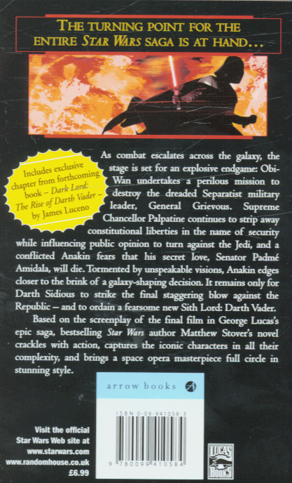 Star Wars: Episode III: Revenge of the Sith by Stover, Matthew (9780099410584) | Browns Books