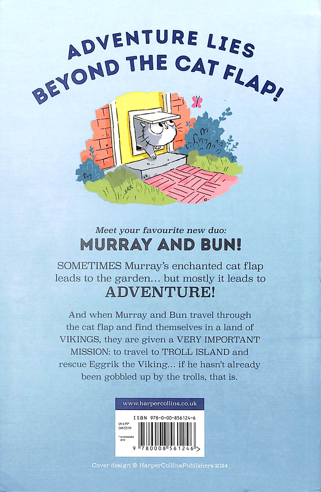 A Waterstones Best Children's Book of the Year ADVENTURE LIES BEYOND THE CAT FLAP! Meet your favourite new duo: MURRAY AND BUN! Murray is a cat. Murray loves snoozing, fluffy blankets, and peace and quiet. Bun is a bun. Bun loves… EVERYTHING! And together they are unstoppable! SOMETIMES Murray’s enchanted cat flap leads to the garden… but mostly it leads to ADVENTURE! And when Murray and Bun travel through the cat flap and find themselves in a land of VIKINGS, they are given a VERY IMPORTANT MISSION: to travel to TROLL ISLAND and rescue Eggrik the Viking… if he hasn’t already been gobbled up by the trolls, that is. Perfect for newly independent readers and fans of Bunny vs Monkey, Dog Man, Adventure Mice and Claude, this funny, exciting, and hugely loveable story – brilliantly illustrated throughout – will delight adventure-lovers young and old.