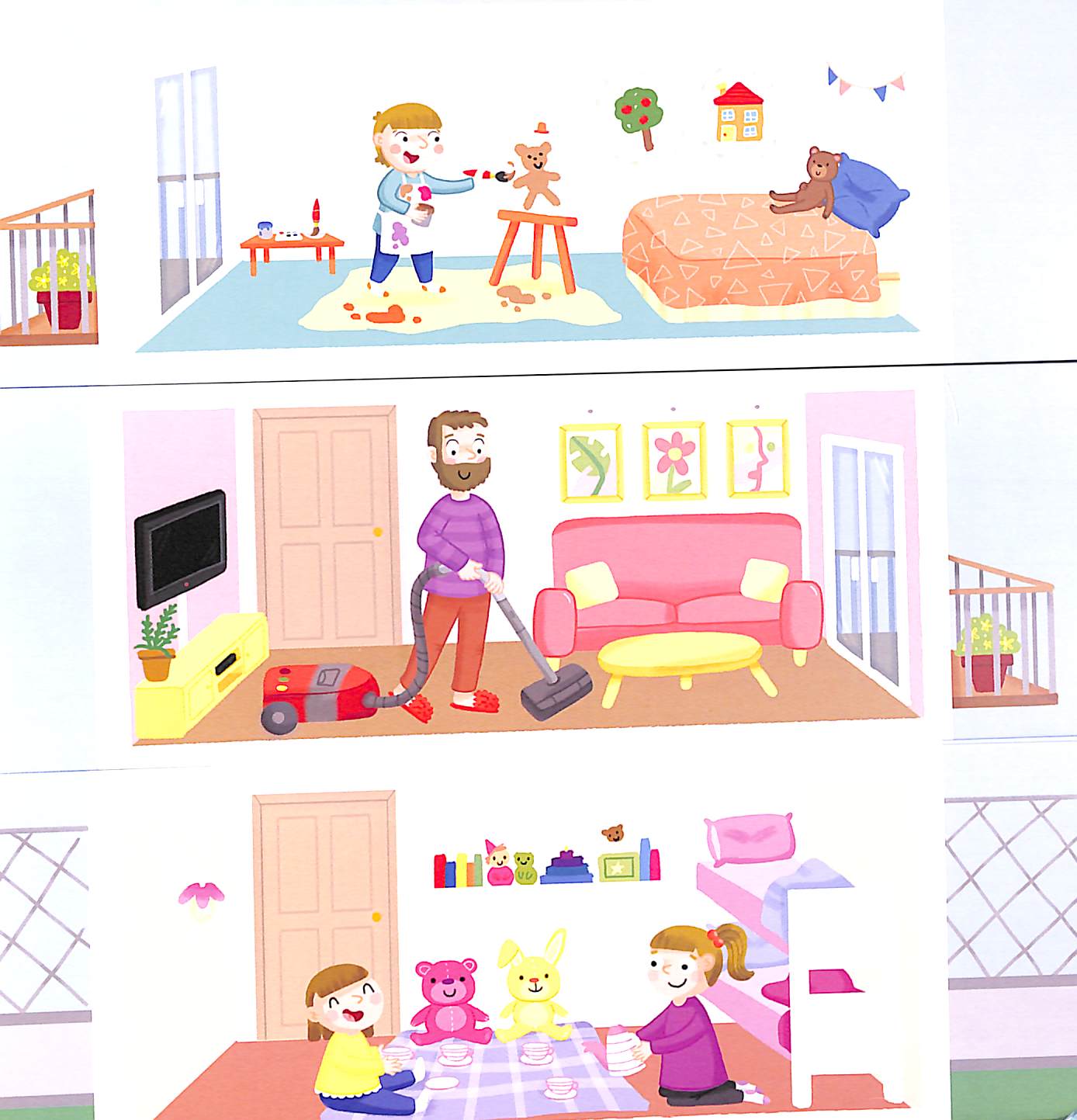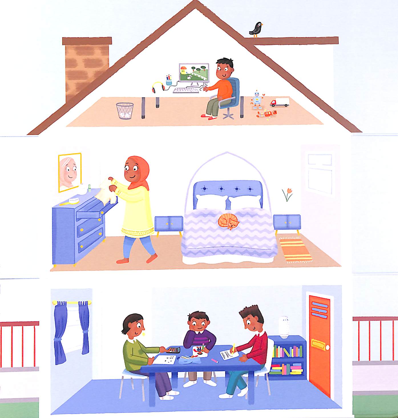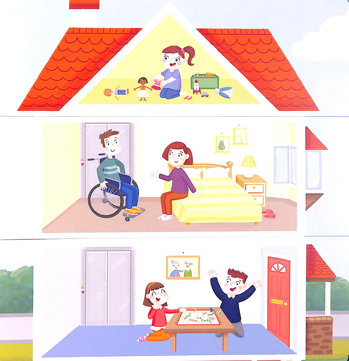 Step inside the homes of these happy families! Turn the flaps to see the colourful houses and make fun mix-and-match families.