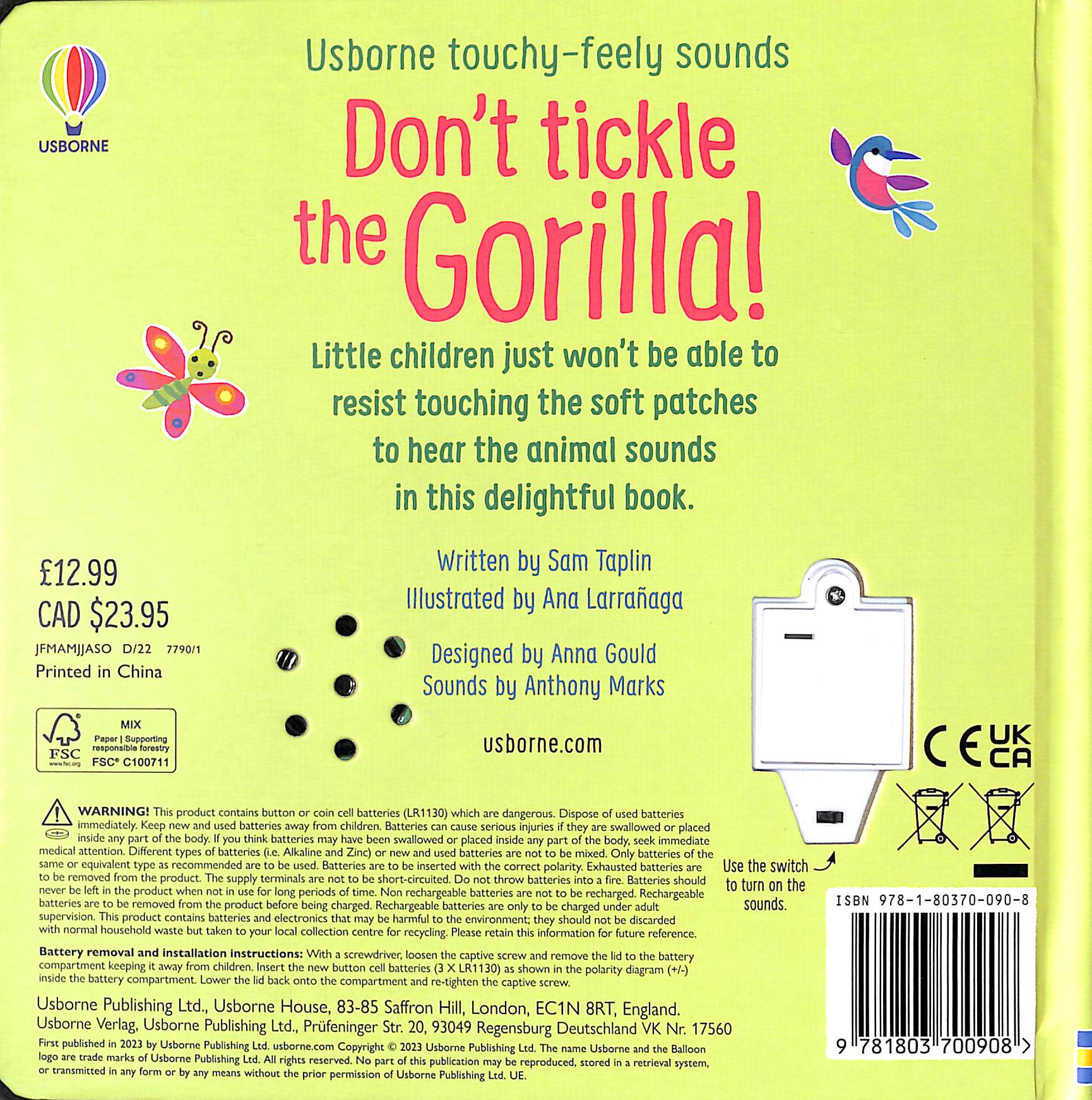 You'd better not tickle the gorilla... because it might just grunt if you do! Babies and toddlers just won't be able to resist tickling the touchy-feely patches to hear each animal make a sound in this hilarious novelty book.