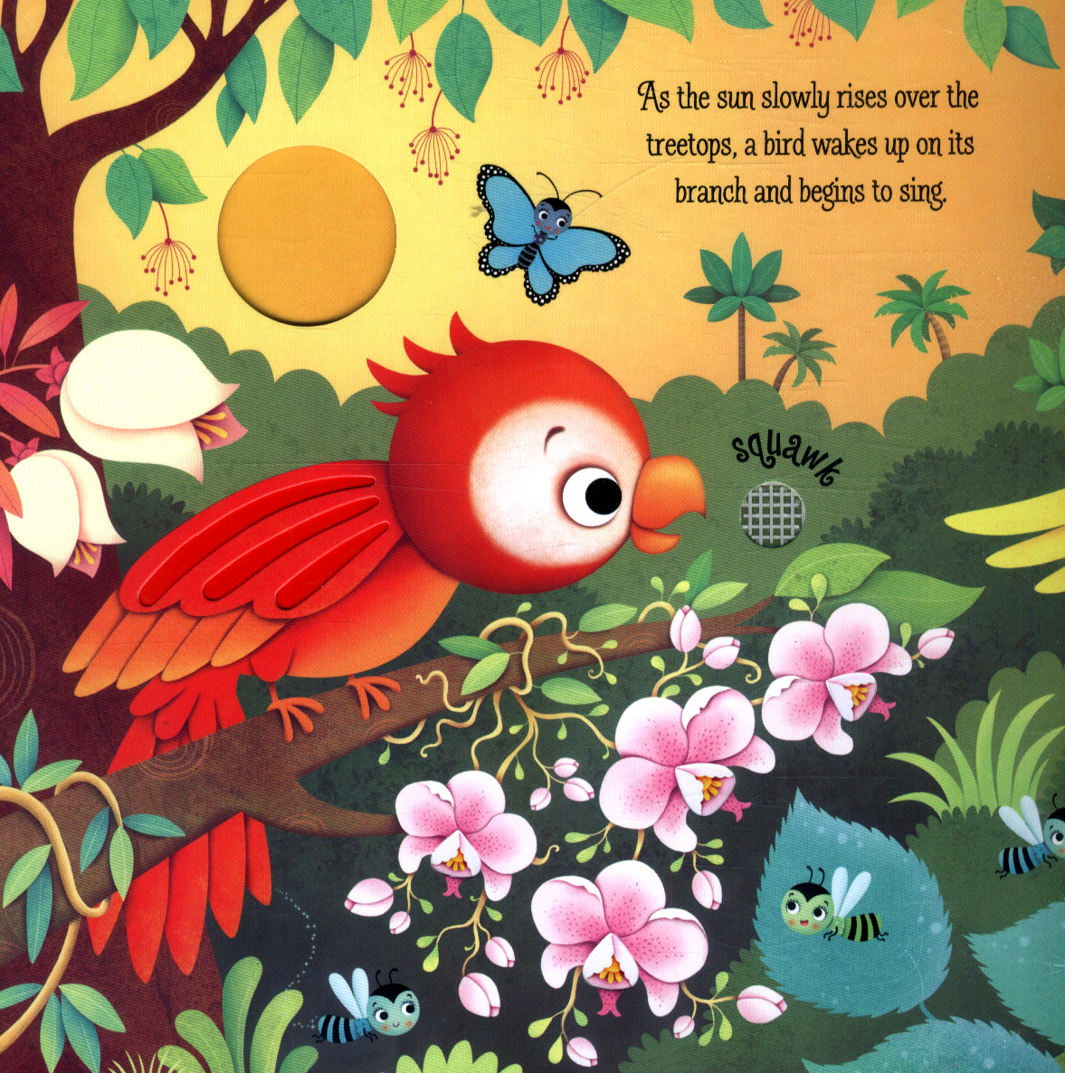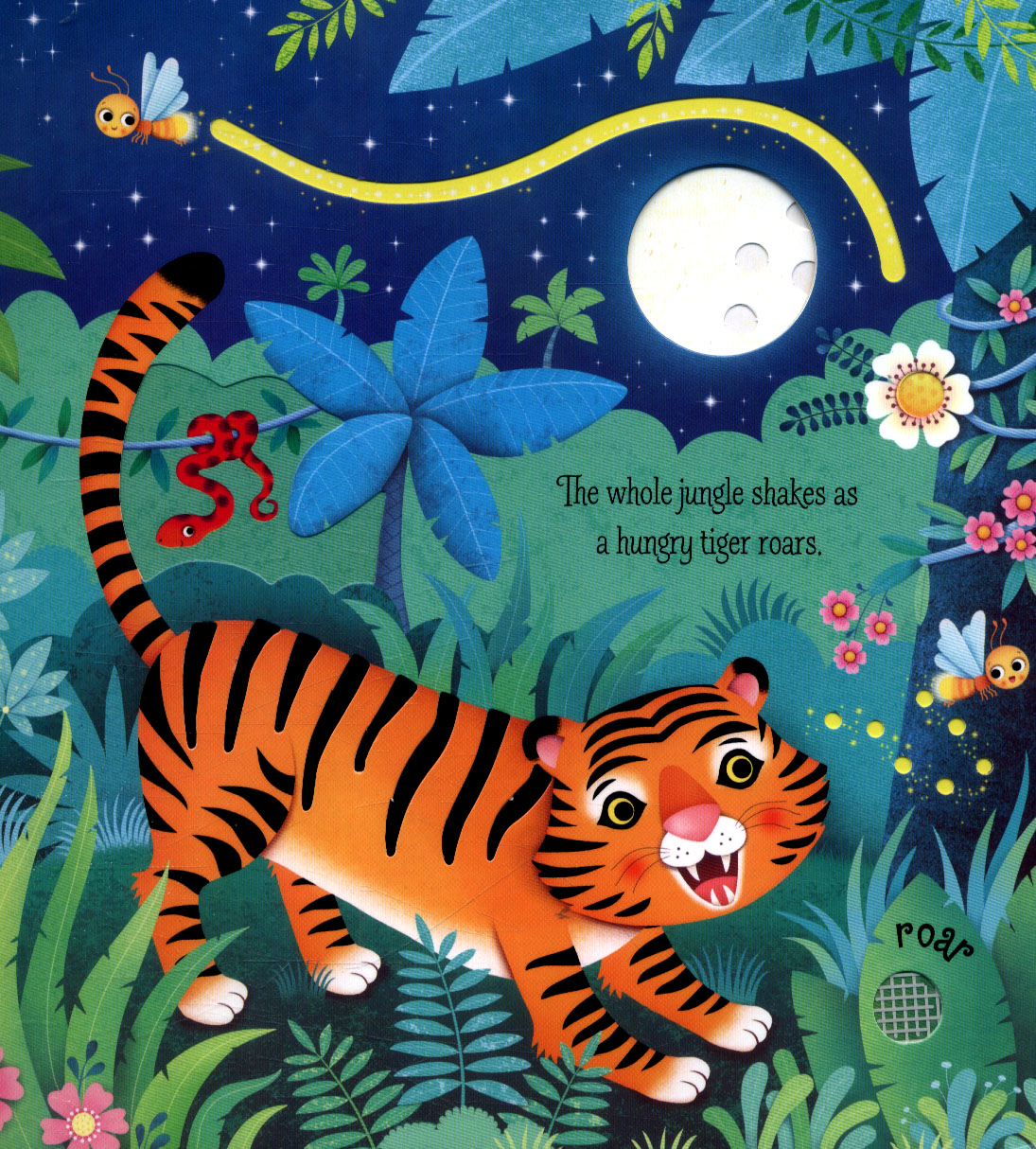 Little children can press the buttons on the pages of this book to hear the wonderful sounds of a jungle, a hungry tiger roaring, tropical birds singing and a noisy orang-utan who isn't yet ready for bed.