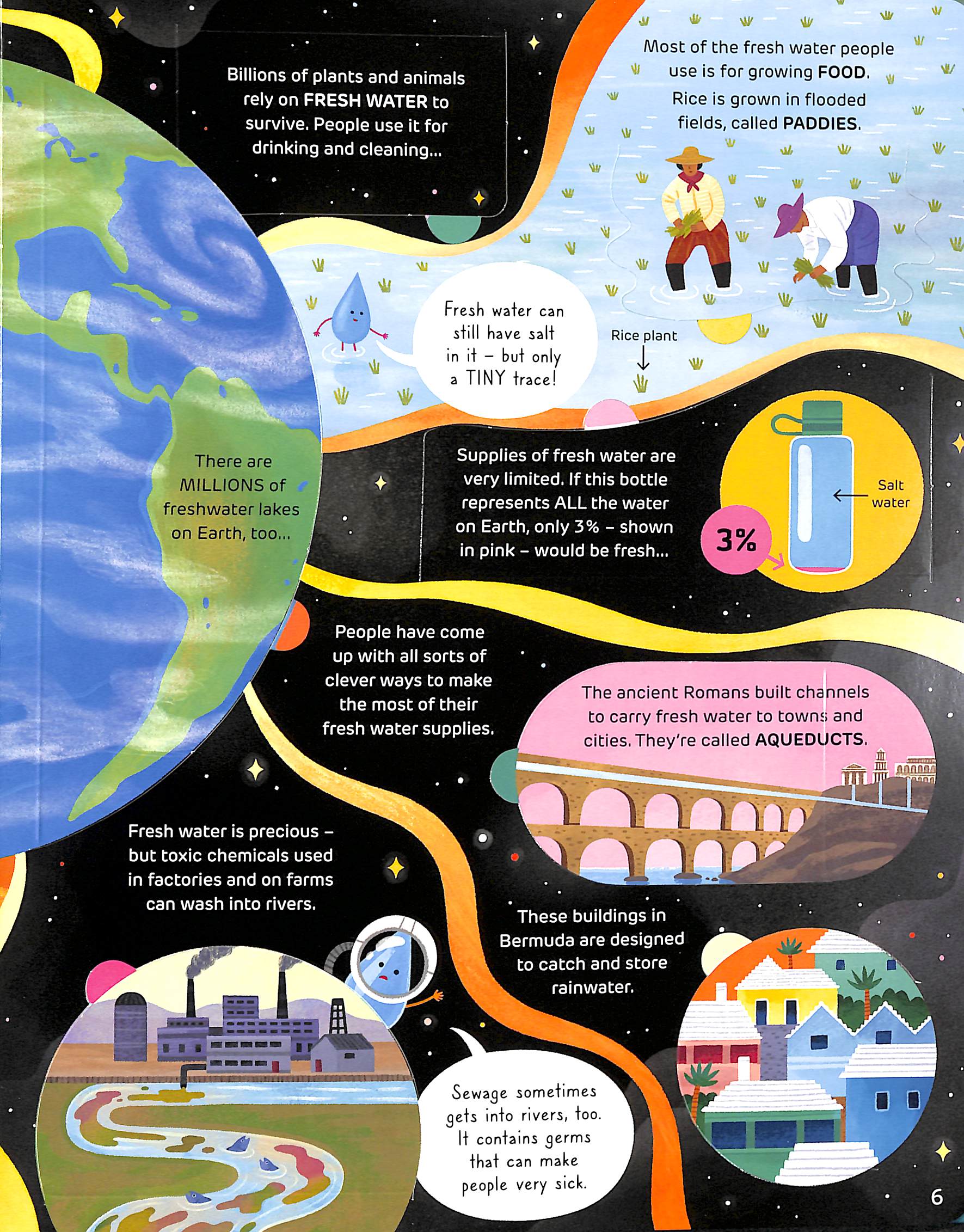 You'll find out how water shapeshifts, where it goes after it falls as rain, how it shapes landscapes, why too much or too little water can wreak havoc...