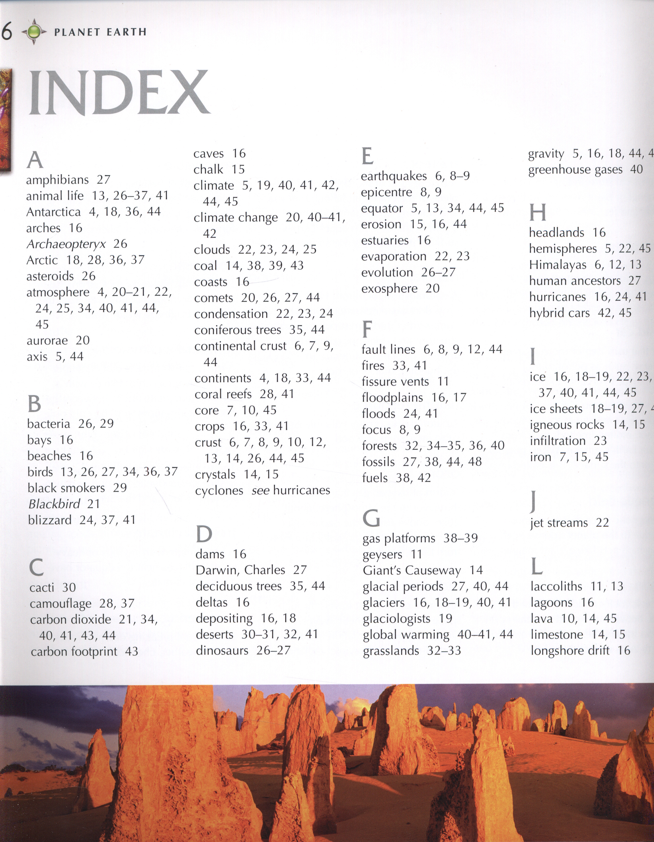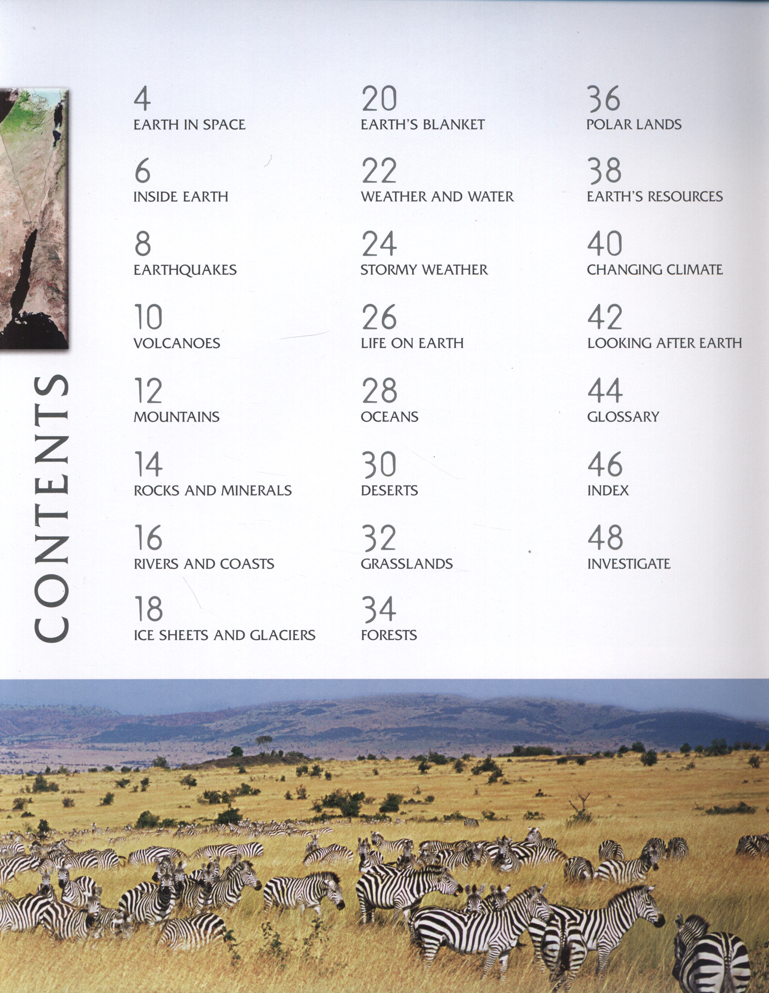 Panels throughout offer focused information on specific topics. Find out more about the structure of our dynamic planet and its elements.