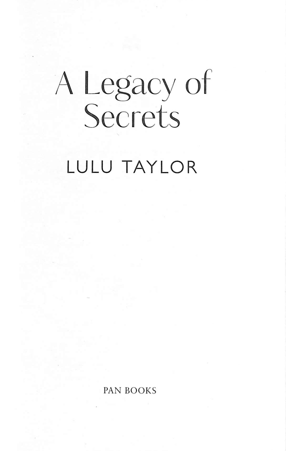 As Etta unravels the threads of Flick’s secrets, she starts to learn the truth about who she really is . . . But can Flick and Etta ever break truly free from the shadows of a painful past, and the curse that seems to hang over every generation of their family?Full of glamour, drama and the peaks and troughs of fortune, A Legacy of Secrets is the unmissable new novel from Lulu Taylor. 'Packed with secrets, complex family dynamics and romance' – Candis'Made for log-fire reading on long, cold evenings' – Lancashire Evening Post'A book to lose yourself in as nights draw in' – Gill Paul'Lulu Taylor is the Queen of winter fiction' – Veronica Henry'Beautifully written, emotionally compelling' – Daily Mail'Fantastic, all-consuming' – Heat'An engrossing read' – Sunday Mirror