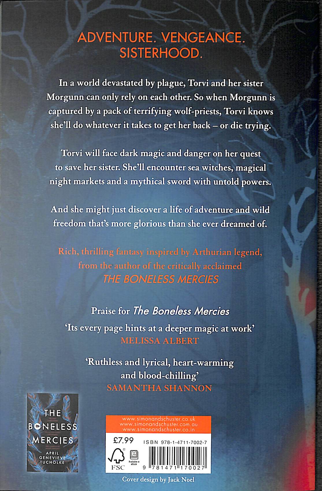 She’ll encounter sea witches, magical night markets and a mythical sword with untold powers. And she might just discover a life of adventure and wild freedom that’s more glorious than she ever dreamed of. Rich, thrilling fantasy inspired by Arthurian legend, from the author of the critically acclaimed THE BONELESS MERCIES Praise for THE BONELESS MERCIES:"Fierce and glorious, this story of outcast girls defying fate utterly bewitched me.