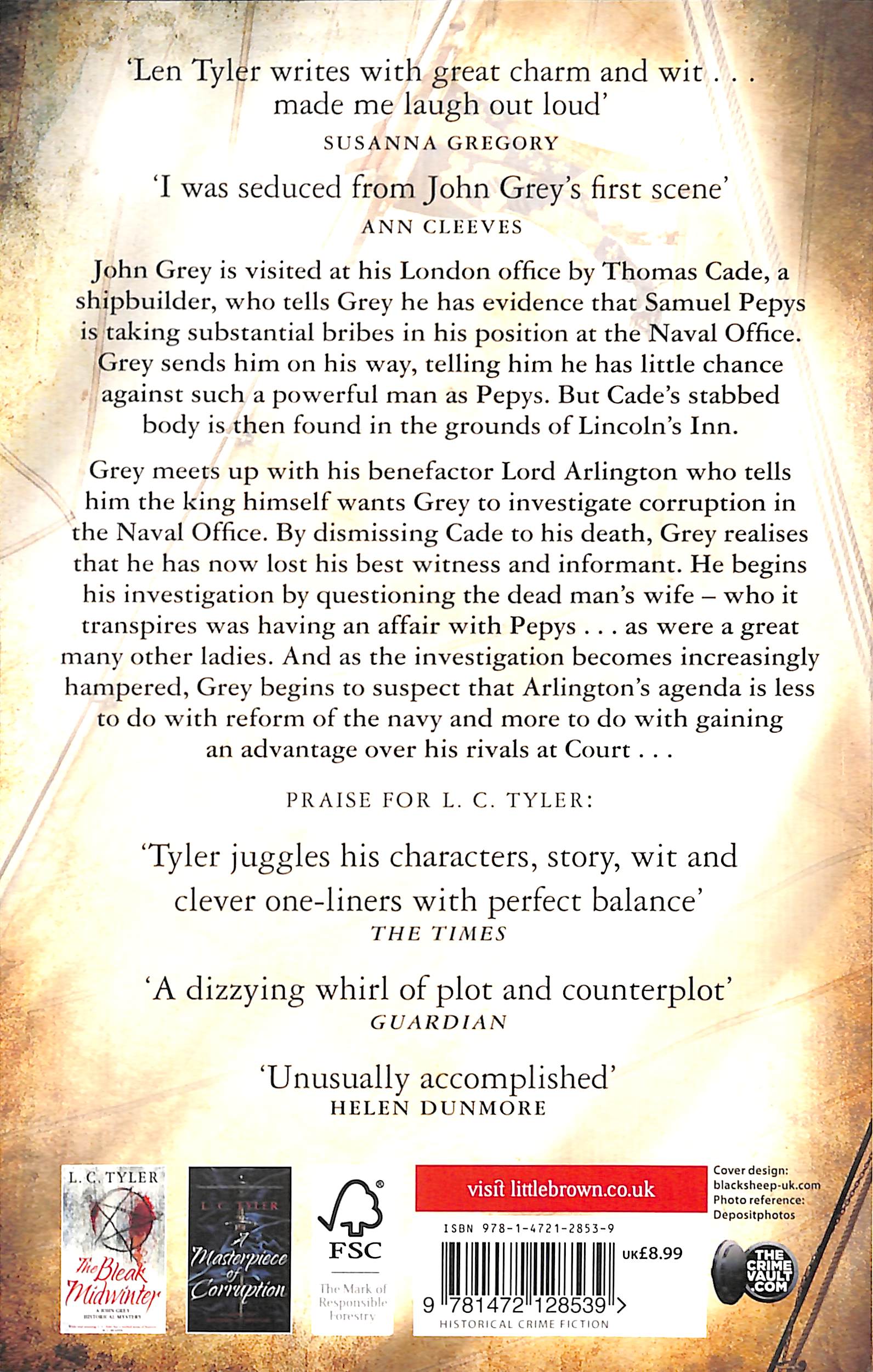 'I was seduced from John Grey's first scene' Ann CleevesJohn Grey is visited at his London office by Thomas Cade, a shipbuilder, who tells Grey he has evidence that Samuel Pepys is taking substantial bribes in his position at the Naval Office. Grey sends him on his way, telling him he has little chance against such a powerful man as Pepys - and then the following morning Cade's stabbed body is found in the grounds of Lincoln's InnLater that day Grey meets up with his benefactor Lord Arlington who tells him the king himself wants Grey to investigate corruption in the Naval Office - and it occurs to Grey that by dismissing Cade to his death, he has now lost his best witness and informant. He begins his investigation by questioning the dead man's wife - who it transpires was having an affair with Pepys... as were a great many other ladies. And as the investigation becomes increasingly hampered while the Court closes ranks and threats made against his life, Grey begins to suspect that Arlington's agenda is less to do with reform of the navy and more to do with gaining an advantage over his rivals at Court ... Praise for L.C. Tyler'Len Tyler writes with great charm and wit . . . made me laugh out loud' Susanna Gregory'I was seduced from John Grey's first scene' Ann Cleeves'Tyler juggles his characters, story, wit and clever one liners with perfect balance' The Times'A dizzying whirl of plot and counterplot' Guardian'Unusually accomplished' Helen Dunmore'A cracking pace, lively dialogue, wickedly witty one-liners salted with sophistication . . . Why would we not want more of John Grey?' The Bookbag