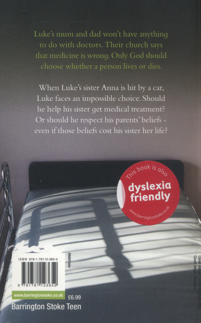 So when Luke's sister Anna is hit by a car, should Luke observe his parents' beliefs? Or go against them and save his sister? Particularly suitable for struggling, reluctant and dyslexic readers aged 12+
