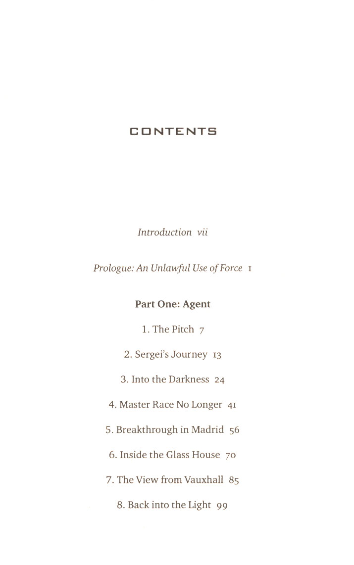 The book explores Sergei's past as a spy in the Russian military intelligence, explains how he was turned to work as an agent by MI6, and his imprisonment in Siberia.