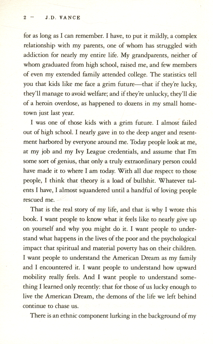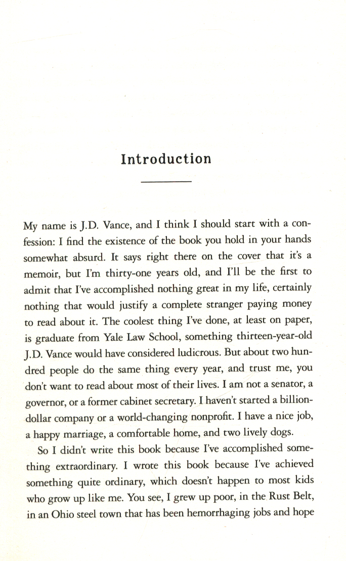 THE INTERNATIONAL BESTSELLER / OVER A MILLION COPIES SOLD THE AMERICAN VICE PRESIDENT'S ORIGIN STORY ‘Essential reading for this moment in history’ New York Times 'You will not read a more important book about America this year' Economist ‘Brilliant … offers an acute insight into the reasons voters have put their trust in Trump’ Observer J.