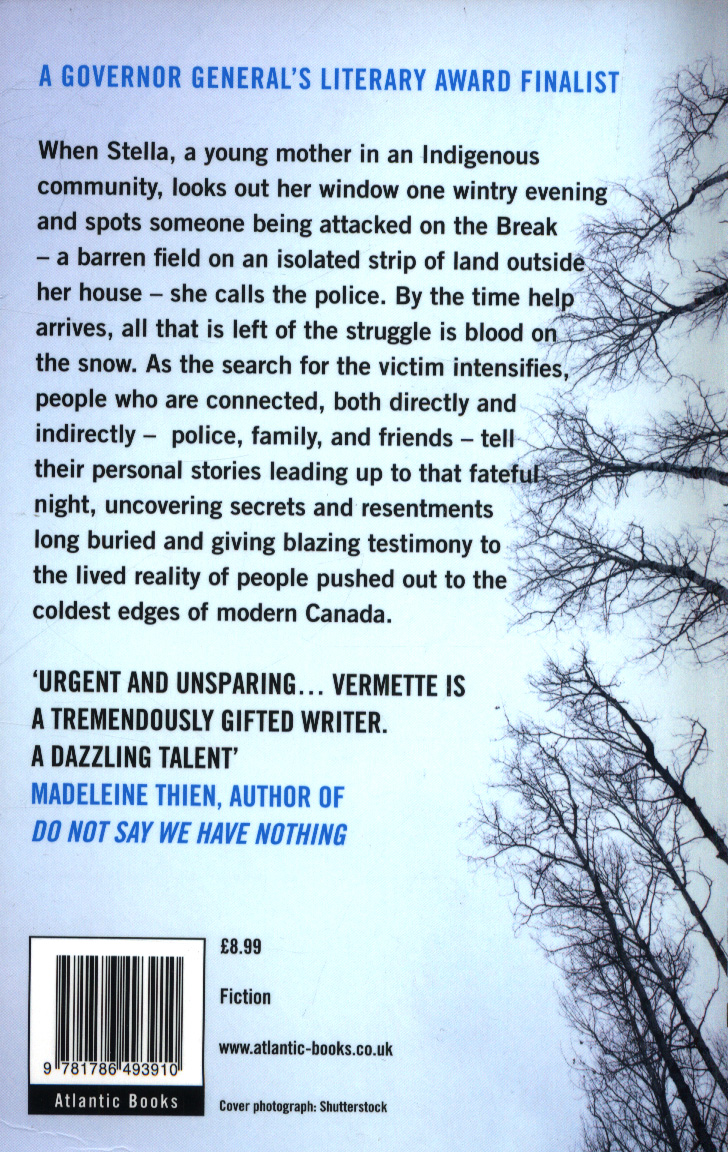 A GOVERNOR GENERAL'S LITERARY AWARD FINALISTLonglisted for the Dublin Literary Award 2018Crime Book of the Month, Sunday Times, February 2018'I loved this... very tough and very real.' - Margaret AtwoodWhen Stella, a young mother in an Indigenous community, looks out her window one wintry evening and spots someone being attacked on the Break - a barren field on an isolated strip of land outside her house - she calls the police.