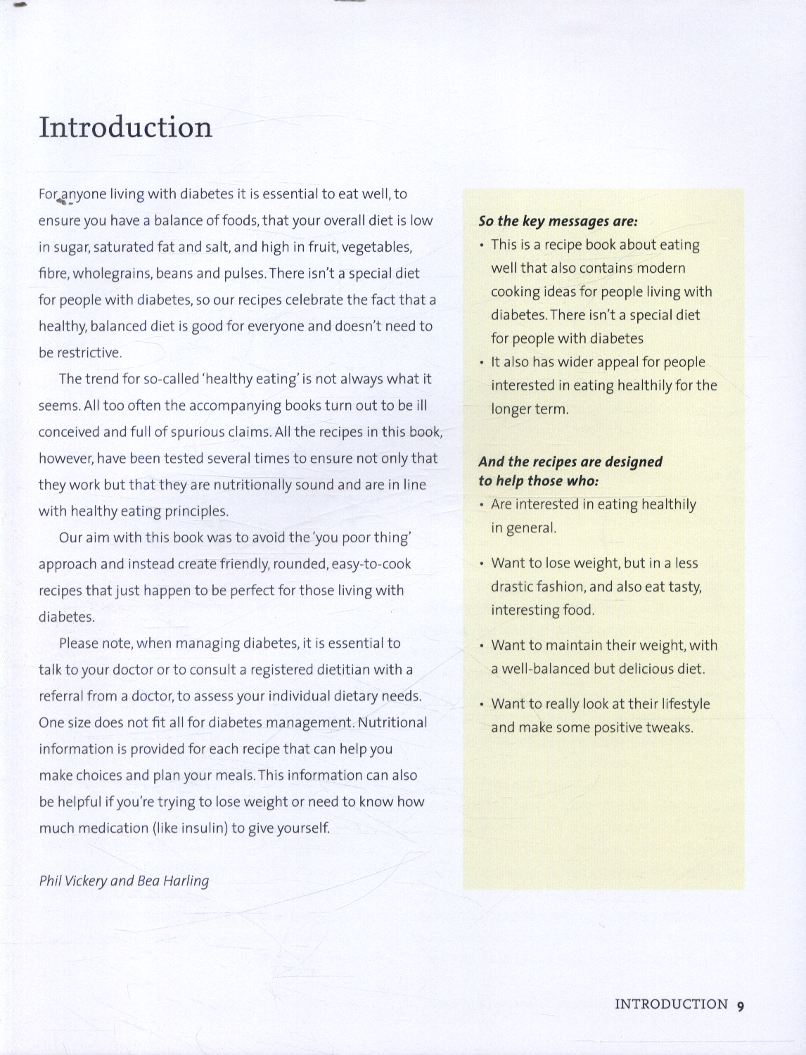 Now he’s turned his attention to creating recipes that will help diabetics take control of their diet and lower their blood sugar levels, with the endorsement of Diabetes UK. Organised into Breakfasts, Light Bites, Soup & Lunch, Main Meals, Sweet Things & Drinks and Sides & Dressings, the recipes are accompanied by nutritional analysis and at-a-glance `traffic light’ labelling.