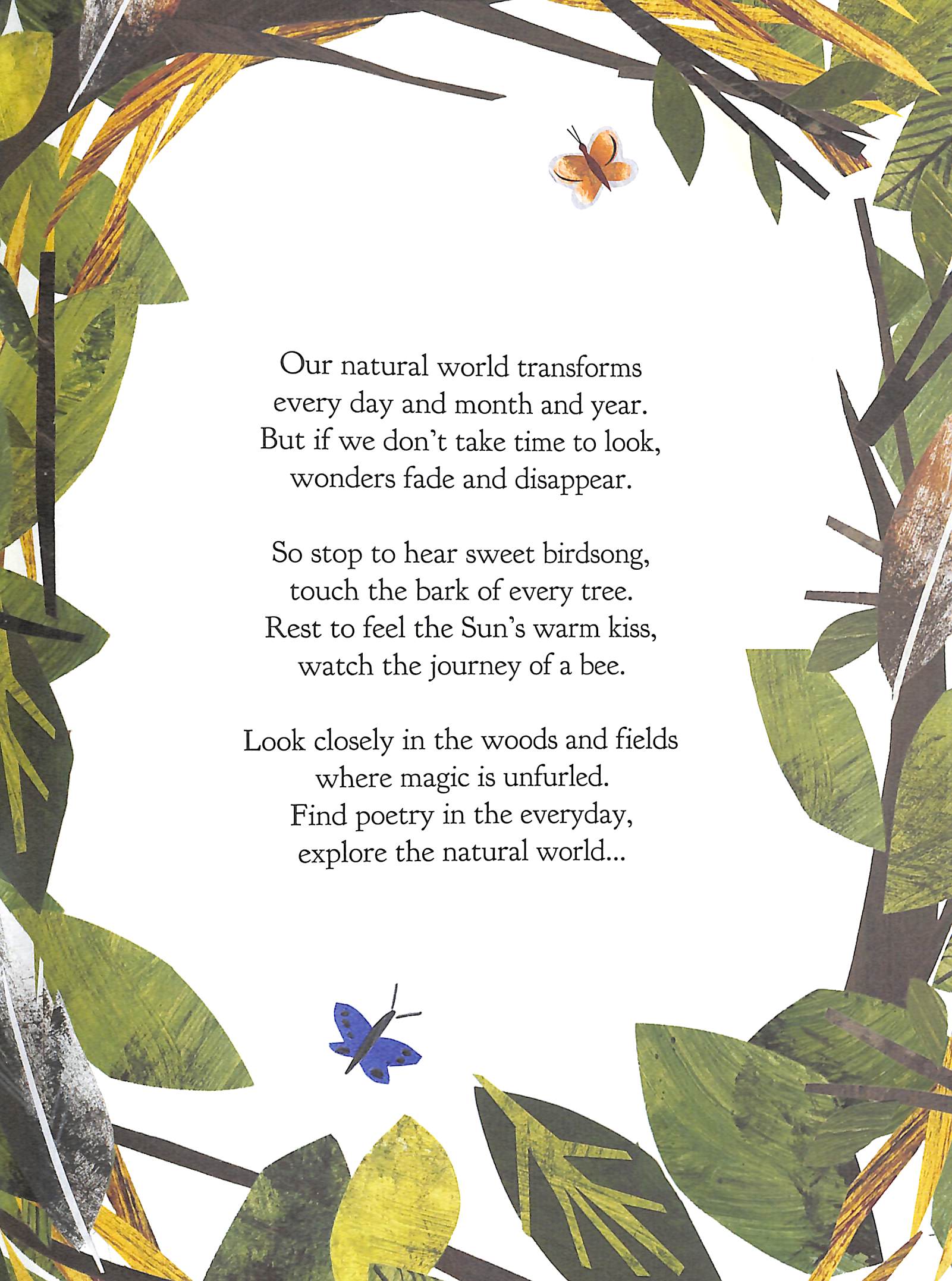 Our natural world transformsevery day and month and year. But if we don't take time to look,wonders fade and disappear. Explore nature through the pages of this beautifully illustrated book.