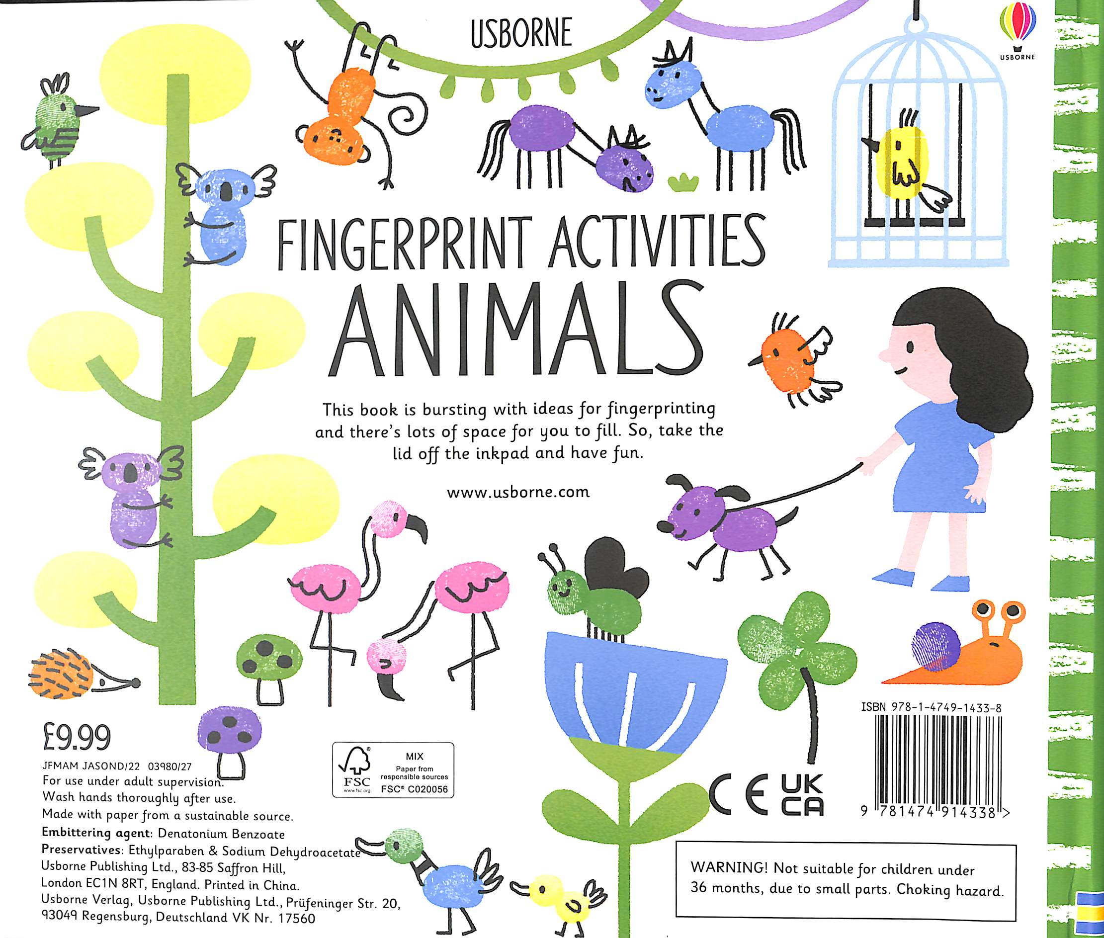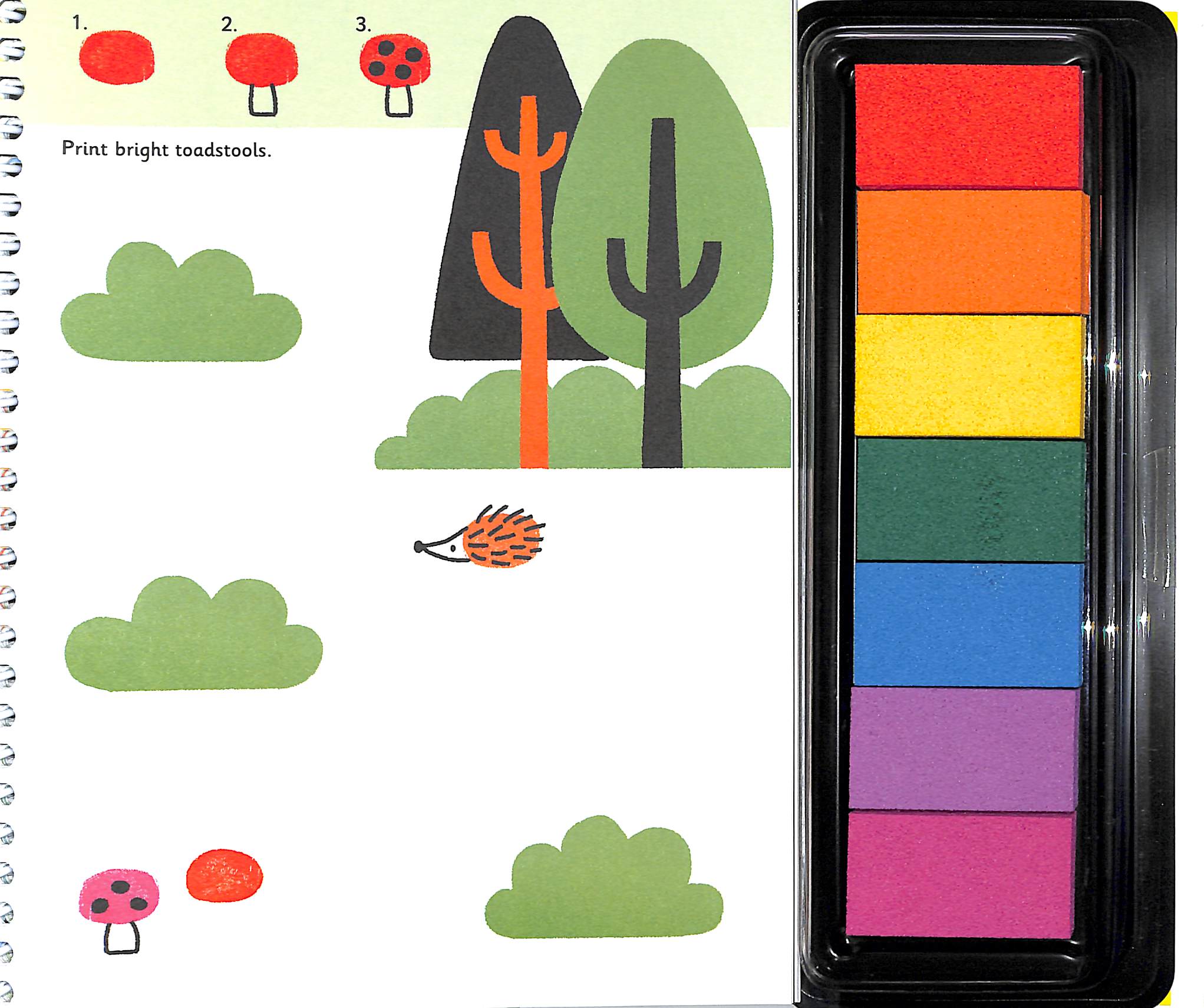 This book, with its own brightly coloured inkpad of seven colours, is bursting with ideas for fingerprinting animals from hedgehogs to crocodiles and koalas.
