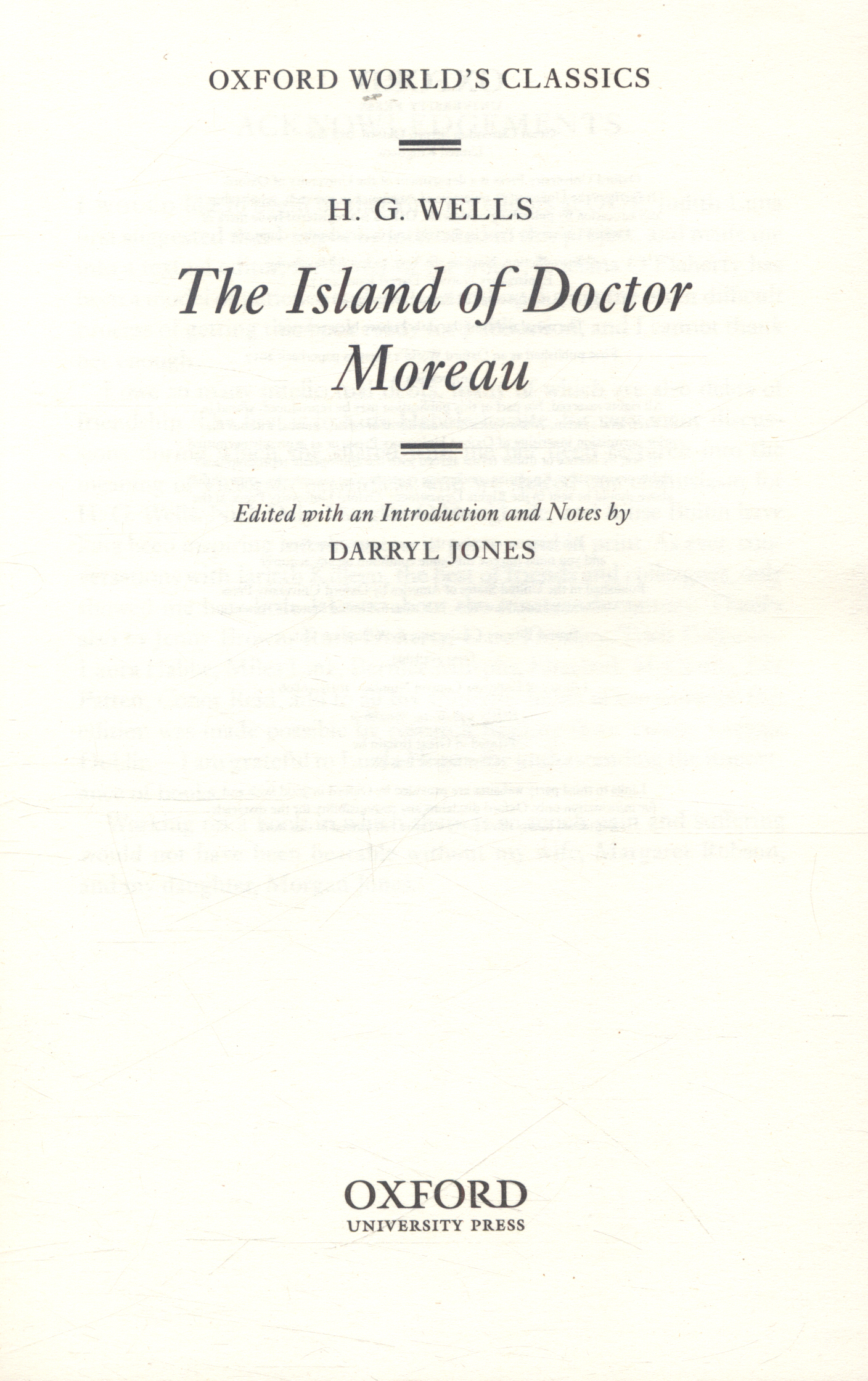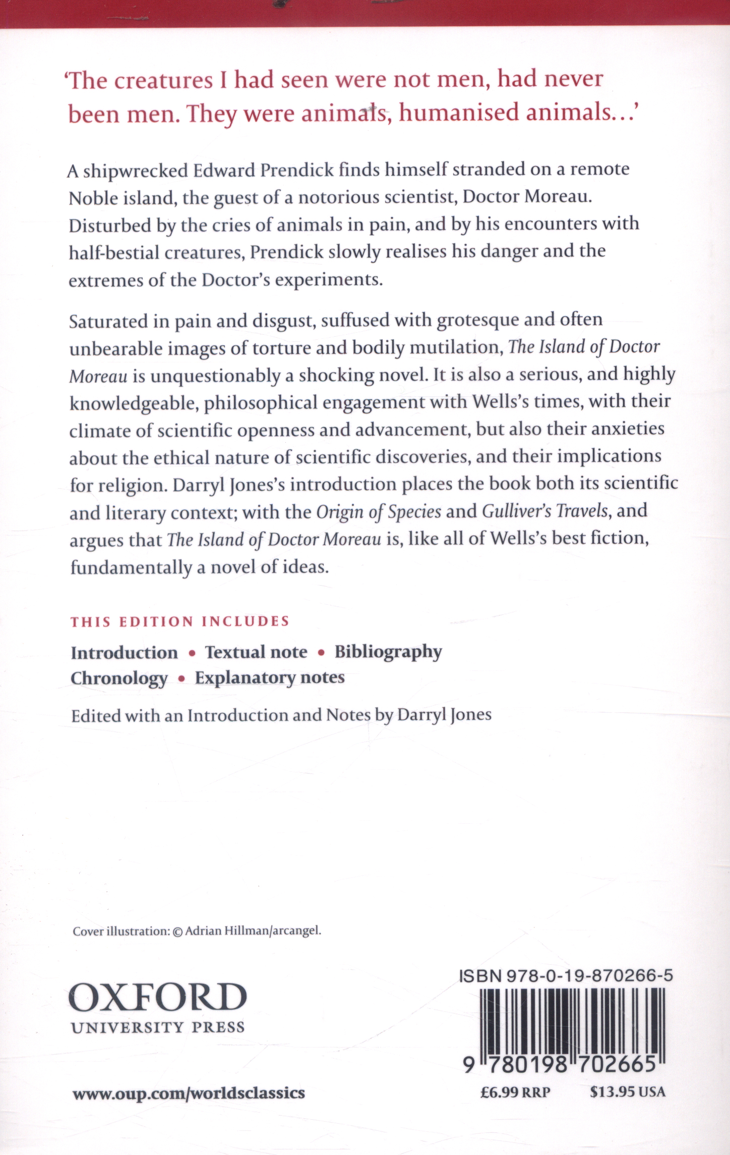 Darryl Jones's introduction places the book in both its scientific and literary context; with the Origin of Species and Gulliver's Travels, and argues that The Island of Doctor Moreau is, like all of Wells's best fiction, is fundamentally a novel of ideas