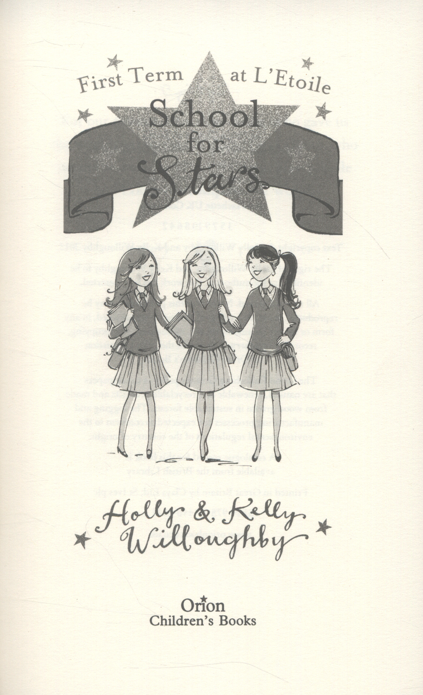 This book is for every girl who has ever danced in front of the mirror, sung into a hairbrush, or dreamed of becoming a star. We are the Willoughby sisters and we have a story to share with you about one of the most important things in the world - friendship. On the first day of term at L'Etoile, School for Stars, twins Maria and Molly Fitzfoster meet Pippa Burrows who's won a song-writing scholarship to the school.