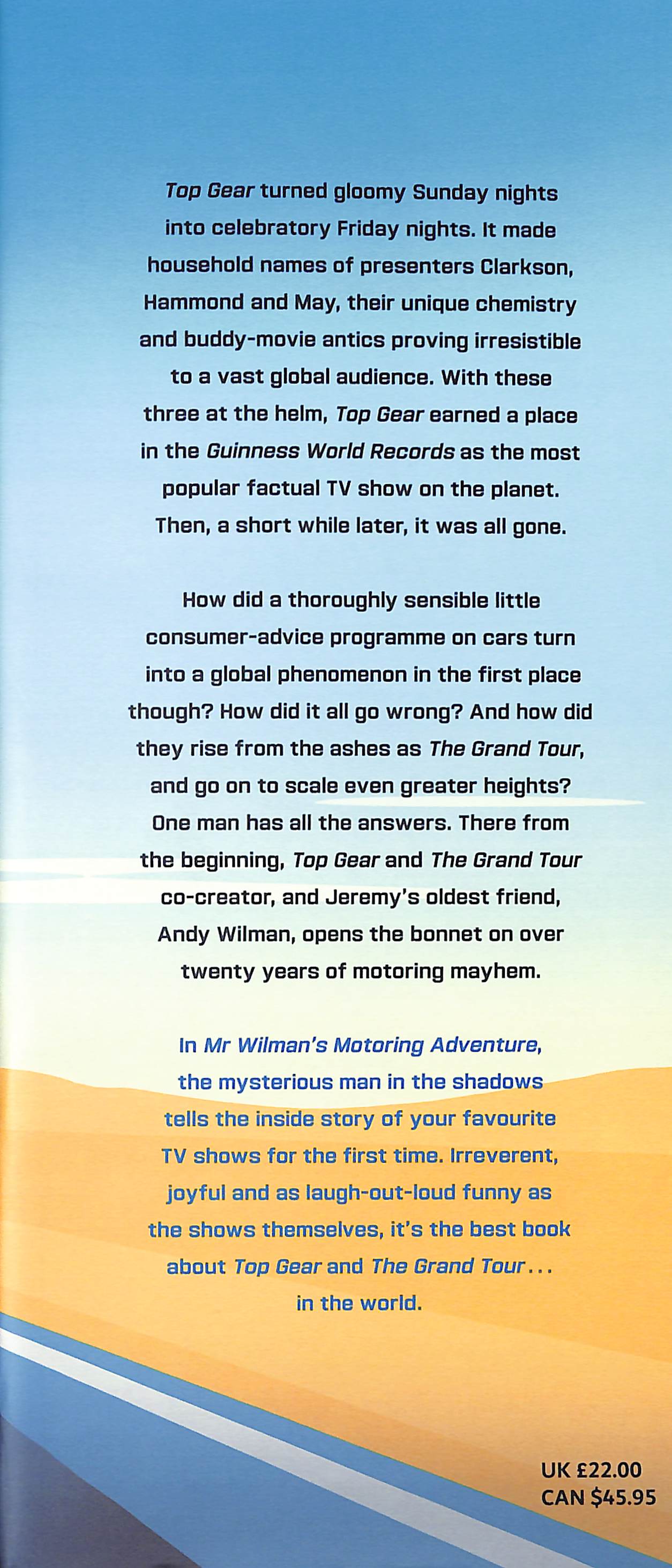 In Mr Wilman’s Motoring Adventure, the mysterious man in the shadows tells the inside story of your favourite TV shows for the first time. Irreverent, joyful and as laugh-out-loud funny as the shows themselves, it’s the best book about Top Gear and The Grand Tour . . . in the world.