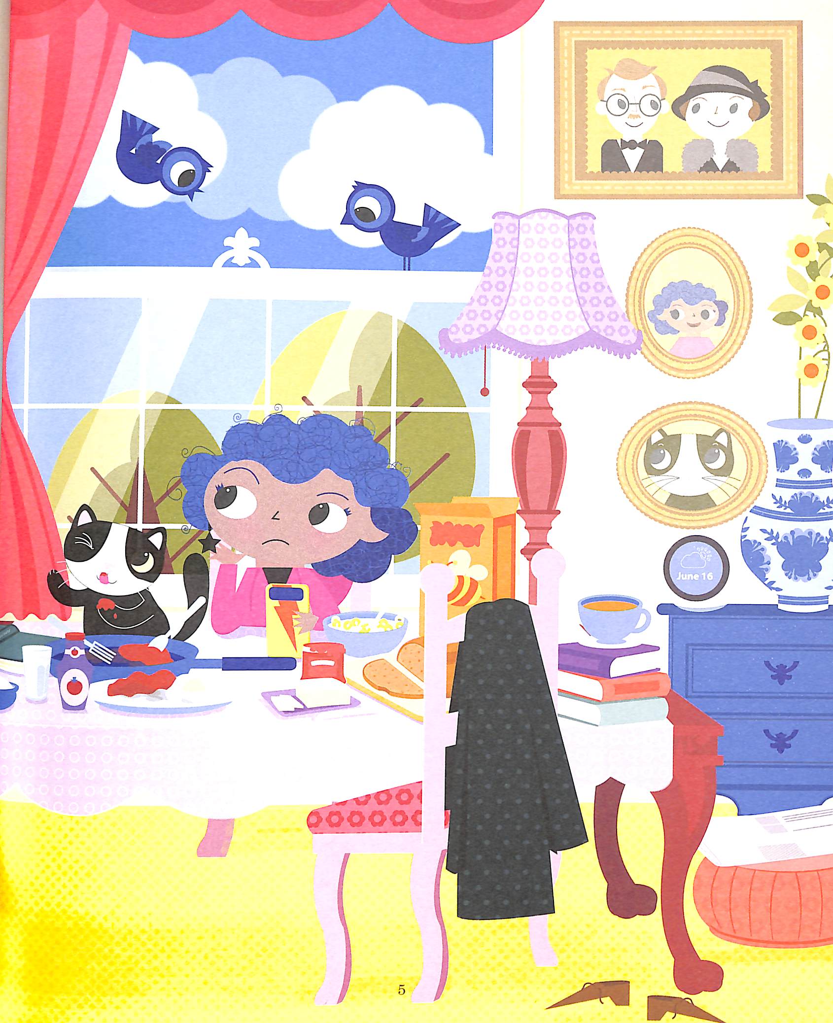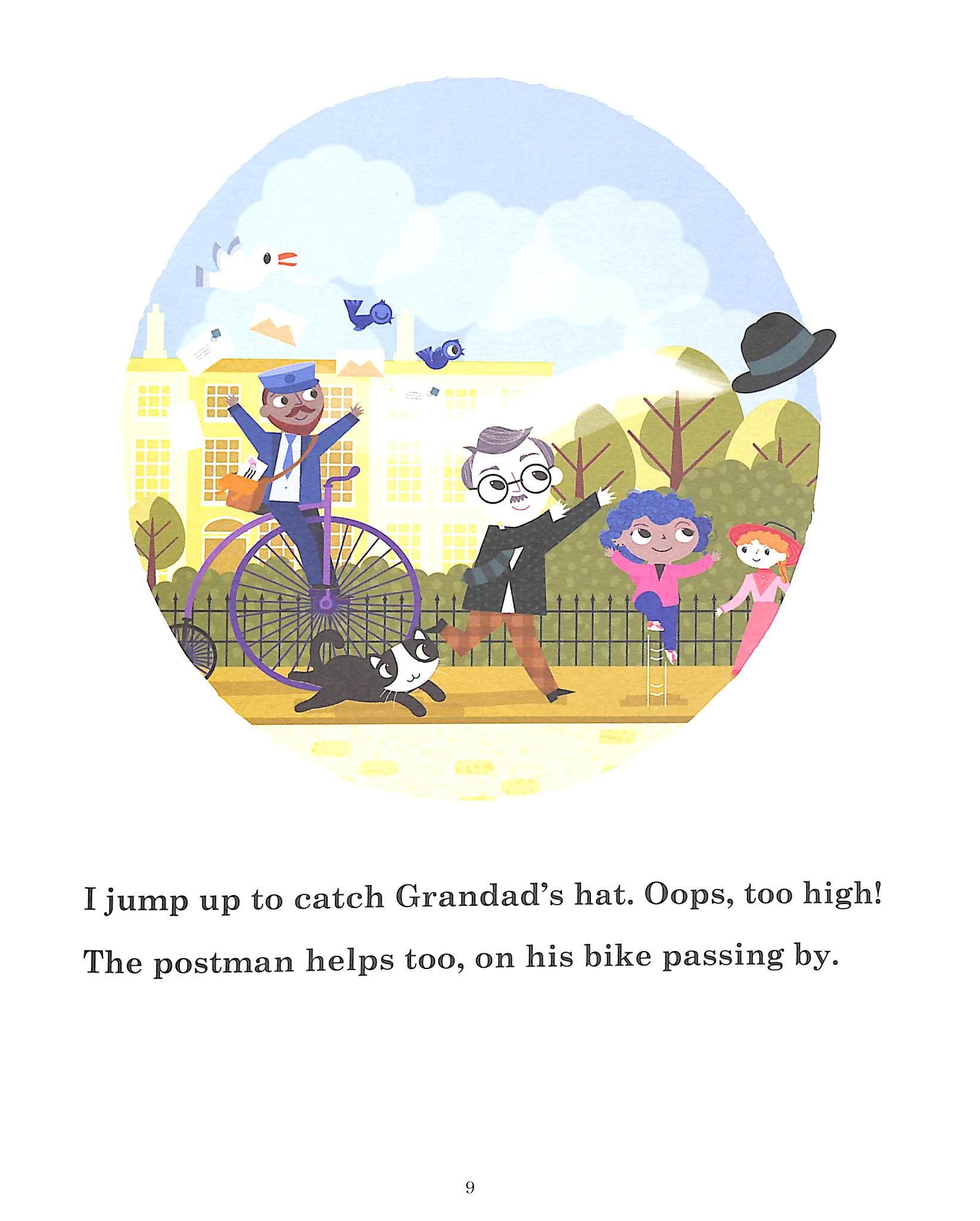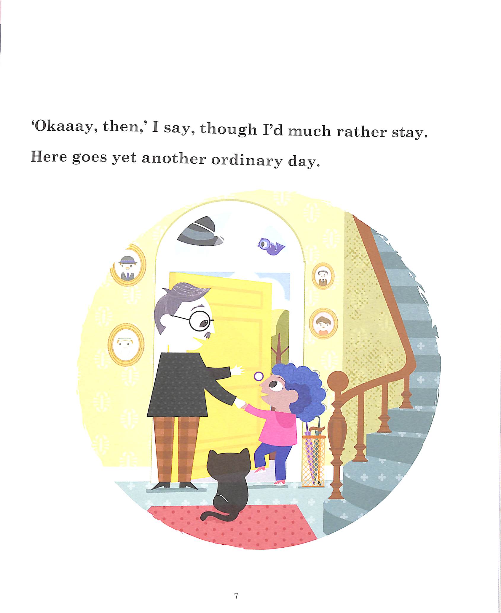 We go down the steps and ... What’s happening here?Why’s everyone wearing this old-fashioned gear?Eccles Street looks like it did years ago. A lady in a big poofy dress says hello.  It seems like just another ordinary day for Rosie and her grandad.