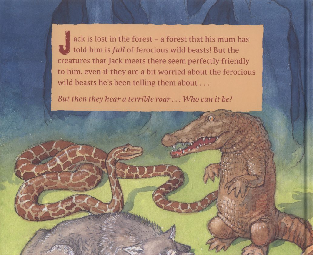 But the creatures that Jack meets there: a bear, a lion, an elephant, a crocodile, a wolf and a python, all seem perfectly friendly to him, even if they are a bit worried about these ferocious wild beasts he's been telling them about ...But then they hear a terrible roar...Who or what can it be?