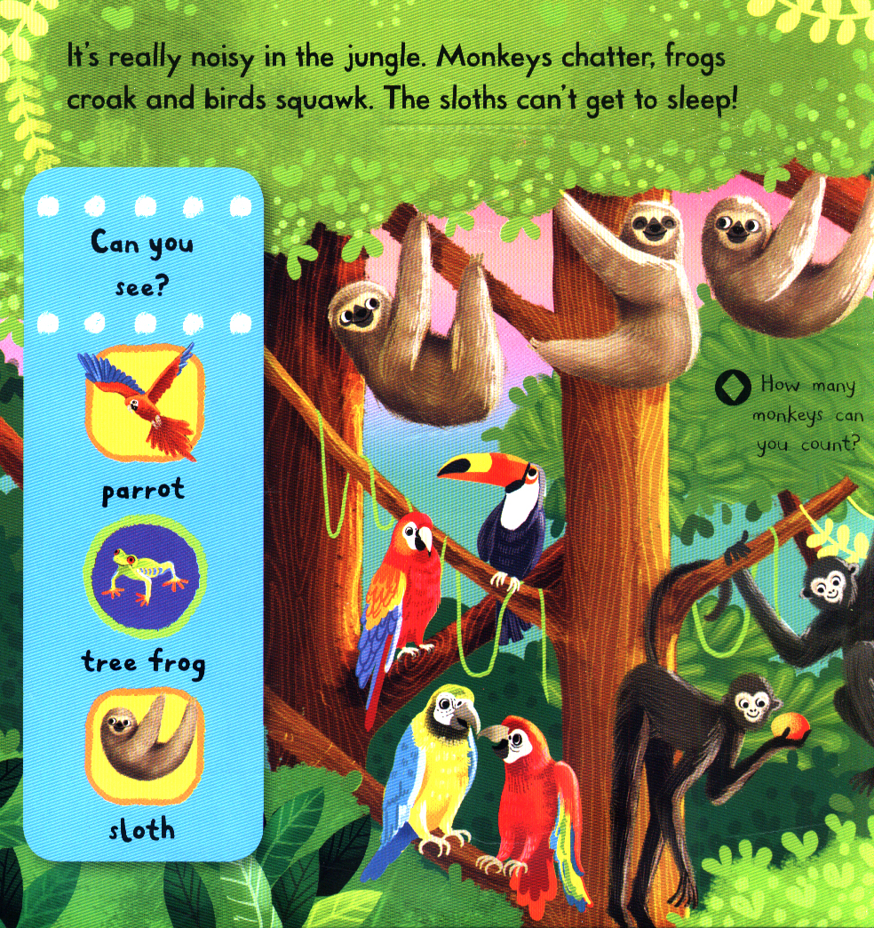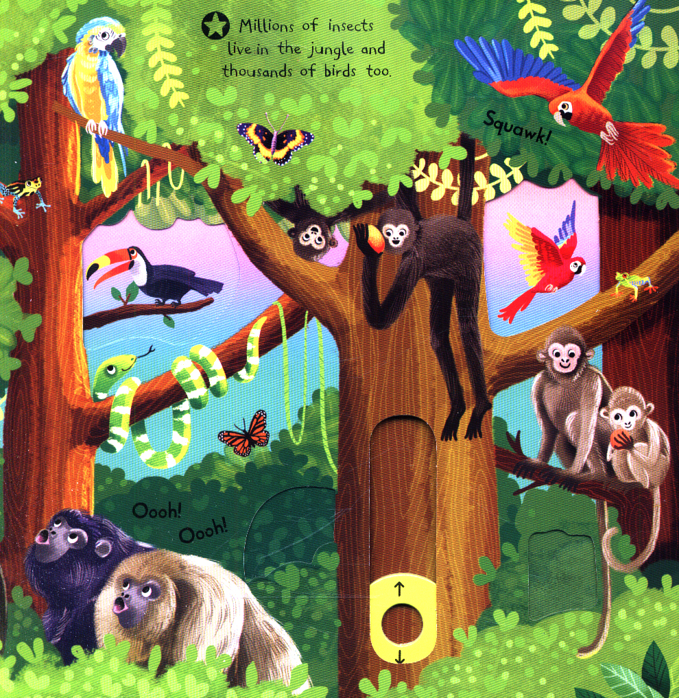 Meet tigers, monkeys, leopards and lots of other amazing creatures who live in the jungle. Each scene has chunky push, pull and slide mechanisms, animals to spot and fun facts about jungle animals.