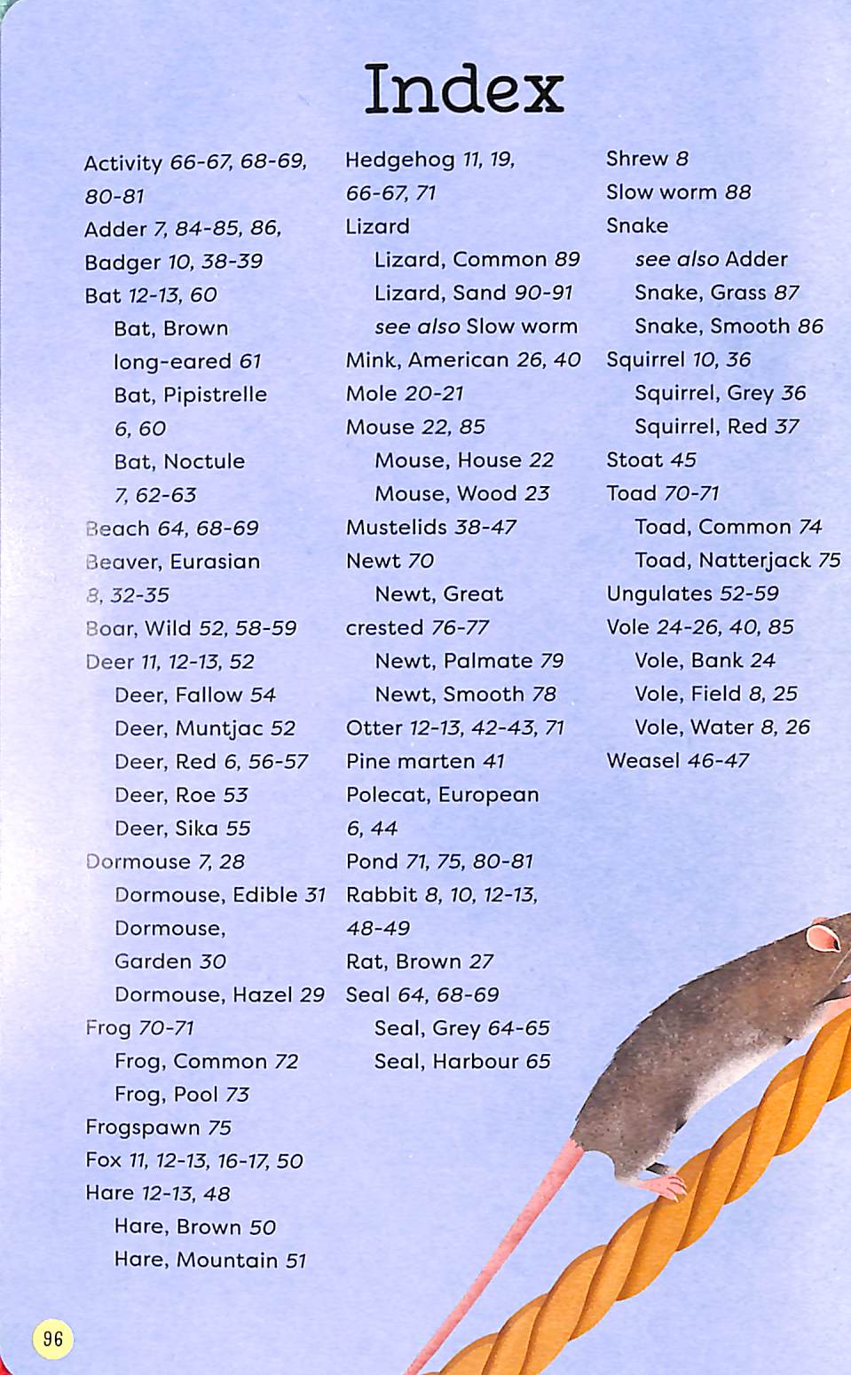 The perfect introduction to the wonders of wild animals for children! Ideal for any budding wildlife explorers, this pocket-sized guide is full of useful tips to help children spot and identify 50 different wild animals. Key Highlights: Encouraging Exploration: Designed to inspire children to venture outside and explore nature, this book ignites the spirit of adventure and discovery. Getting Started: Packed with valuable information, it provides the essential knowledge needed to identify different mammals, amphibians and reptiles that live all over the UK, making it accessible and enjoyable for kids. Field Guide Expertise: Inside, you'll discover a comprehensive field guide section, brimming with expert insights on wild animals including rabbits, foxes, bats, seals, otters, snakes and more! Fun Activities: Discover how to organise a beach clean, make your own mini pond and build a hedgehog hotel. For more adventures, don't miss other titles in the series: National Trust: Out and About Tree Explorer, National Trust: Out and About Bird Spotter and National Trust: Out and About Minibeast Explorer.