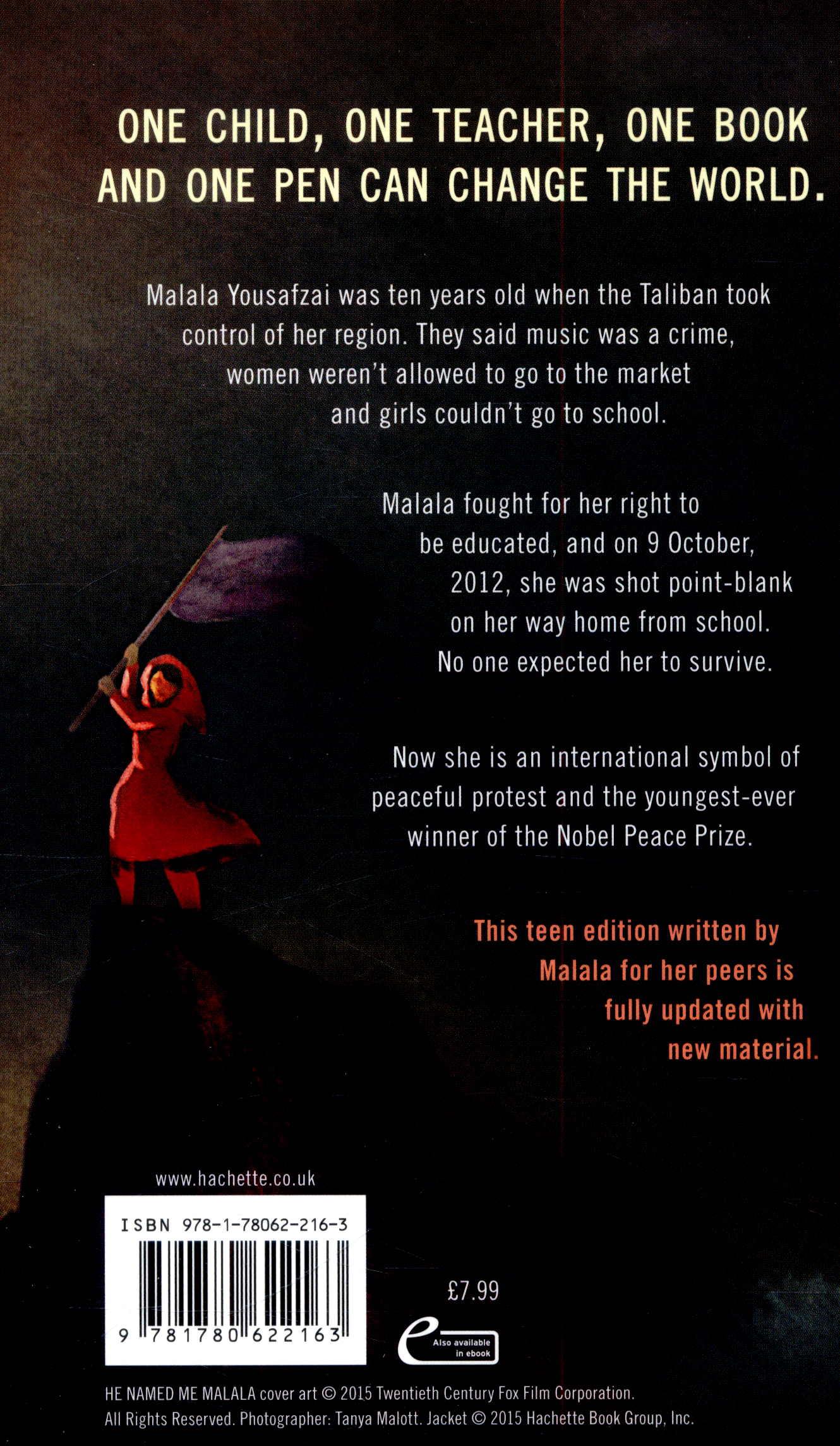 The paperback includes extra material, a Q&A and updated discussion notes. * This book inspired the film HE NAMED ME MALALA, the winner of the BAFTA for Best Documentary.